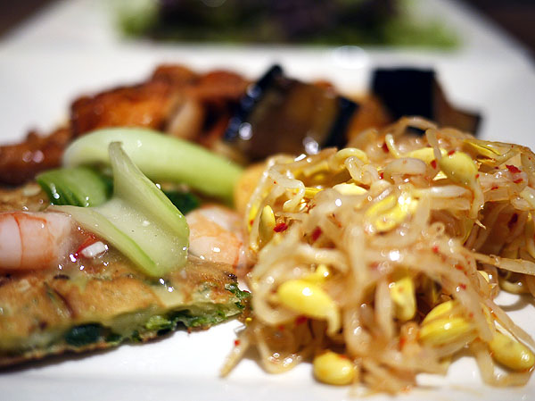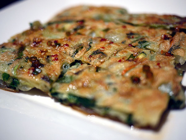 海鮮類をタップリいれてカリっと焼いた歯触り軽いチヂミもいいけど、今日のこれは野菜タップリ。