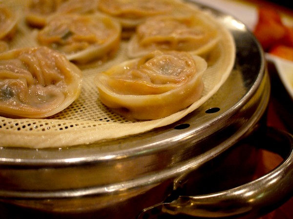 キムチの入ったしっとり餃子で、これはやってきた器に釘付け。