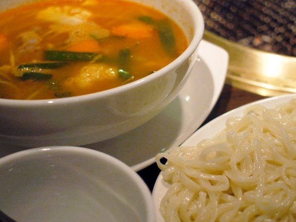 できればスープが石鍋でグツグツしながらやってきて、そこに冷たい麺を沈めて食べるなんて工夫があったら最高なのに…、ってちょっとワガママ、思ったりする。