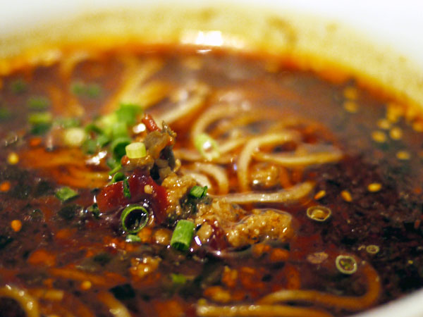 四川風の担々麺を小さなお椀でズルっとやります。