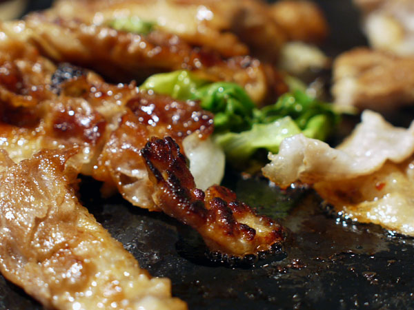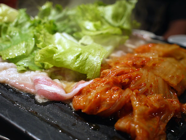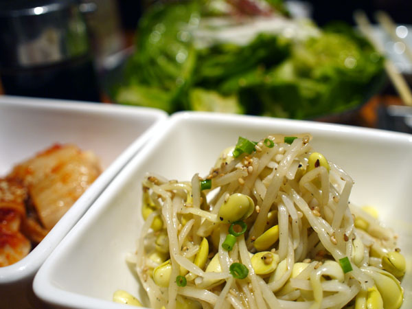 サラダにナムルをつまみつつ、ホルモンたのむとさすがに網の交換にくる。