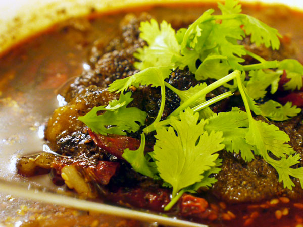 スープがちょっと変わってて北京風の「火鍋」のスープのようにサラサラ。