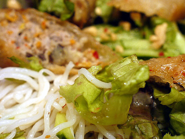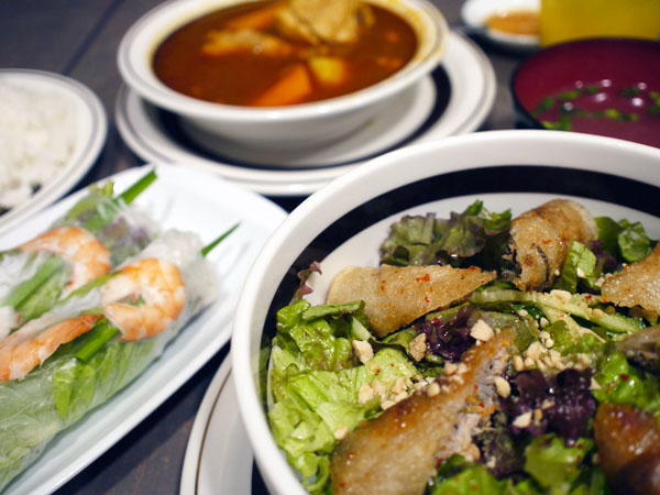 胡麻ドレッシングで香り豊かなサンチュのサラダも口をサッパリしてくれる。