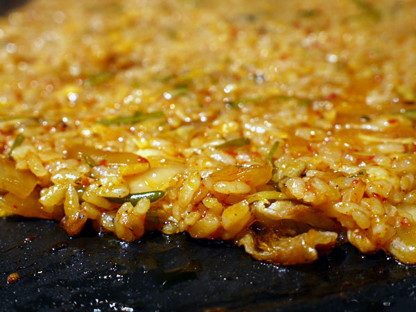 堅めに焚いたご飯をポンっと石焼ビビンパ用の石釜に入れ火にかける。