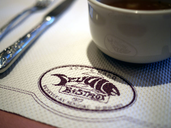 テーブルマットにも店名の由来となった鮫のマークと、1977の文字が押される。