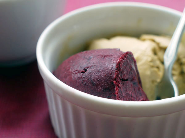 カシスの果汁をそのまま氷に閉じ込めた、そんな濃厚なカシスのソルベ。