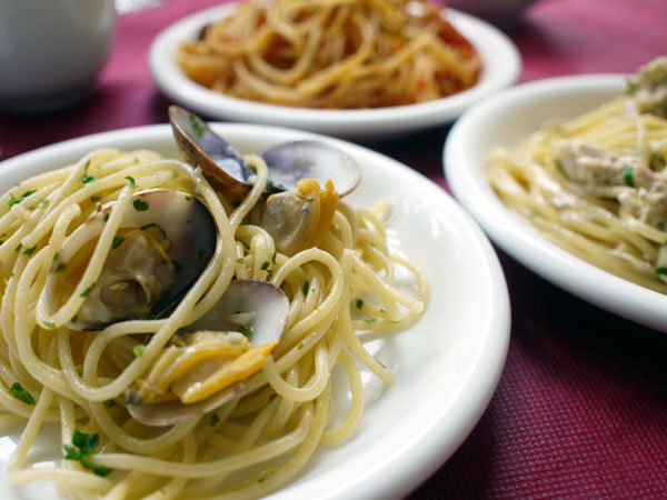 厨房の横で出来上がる、出来立てパスタを一口ずつ味見をさせてもらってる…、そんな感じがかなりうれしい。