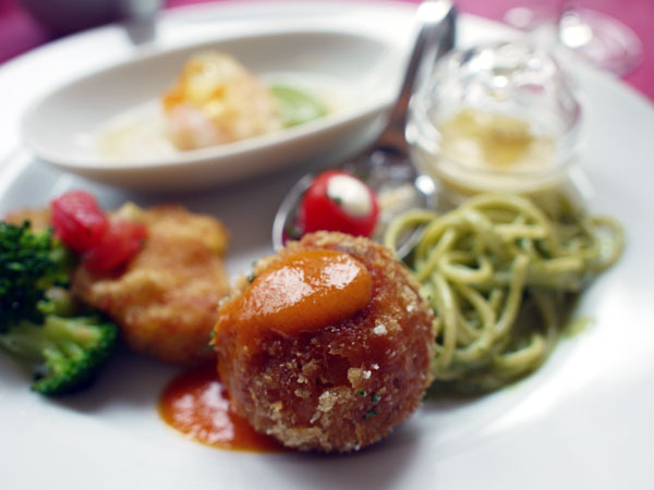具沢山のミネステローネや、カボチャの冷たいポタージュで時間稼ぎをしながら今日のメインがやってくるのをぼんやり待ちます。