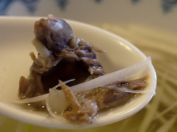 じっくり煮込んでテールの旨みを存分に、水に移してそれをいただく。
