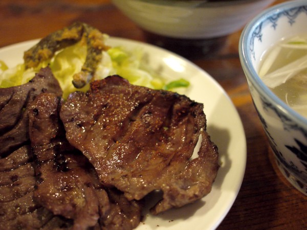 つまり、部分の違いはそのまま噛んだ食感に素直に反映される違いで、ここのタンはどれも見事にサクッと歯切れてムチッと歯茎に絡みつく。