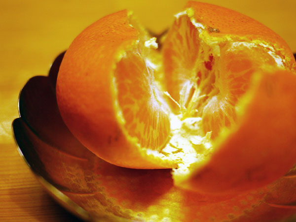 お尻に指をキュッと突っ込みパカっと割って、一房一房丁寧にとる。