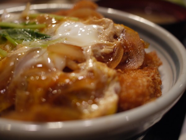 中でも一番お気に入りなのは、かけカツ丼で、ザクザクッとした揚げ立てカツと出汁の中で溺れたみたいなシットリ玉子の両方を、一度に味わうことができる贅沢料理。