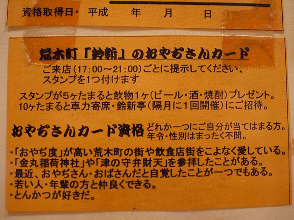 名前が「荒木町おじさんカード」。