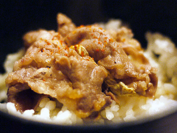 甘辛く煮込んだ牛肉には、どれだけ七味をかけても辛く感じない。