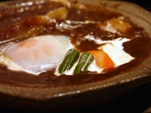 とんかつのためのソースと、ご飯をおいしくたのしむためのカレーがひとつ丼の中にて混じる、口の贅沢。