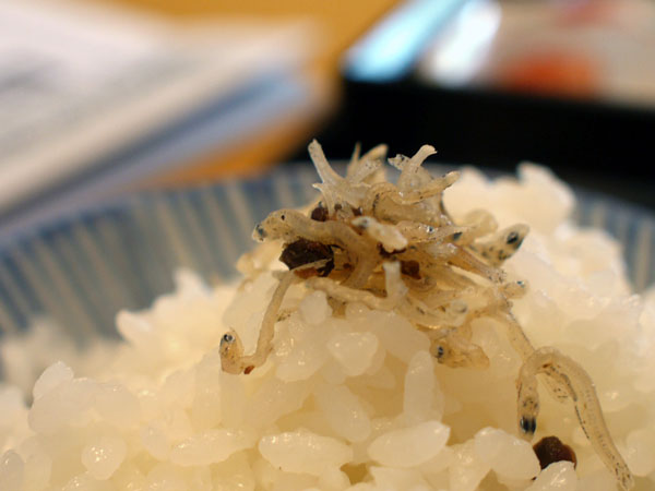 ちりめん山椒をご飯にのせる。