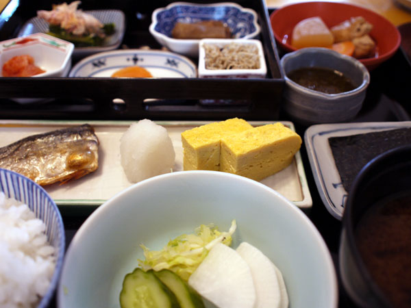 健康的によい和朝食は、炊きたてご飯をおいしくたくさん食べられるように最適化されているのがありがたい。