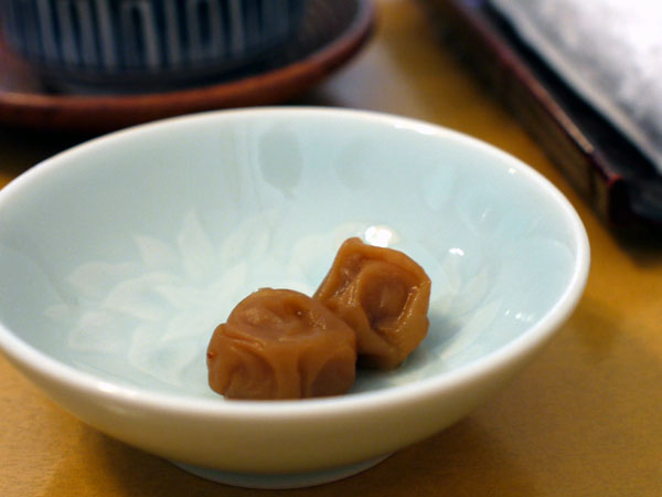梅干し一個を舌にのせ、酸味がジンワリ滲んでくるのをたのしんで、お茶をこくっと流し込む。