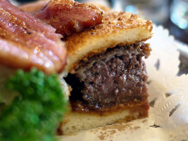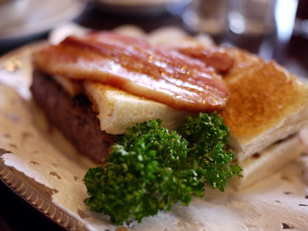グリルドベーコンもほどよい薫製具合でとても香ばしく、しかもその脂の香りがパンに移ってサンドイッチを風味豊かにおいしくさせる。