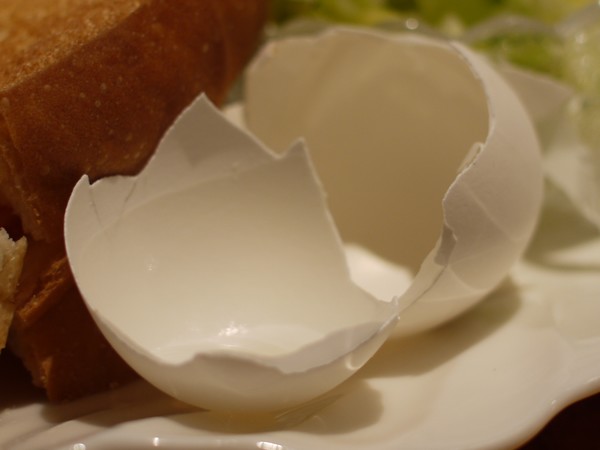 コツンとテーブルを玉子で叩き、そっとやさしく入念に、殻を剥く。