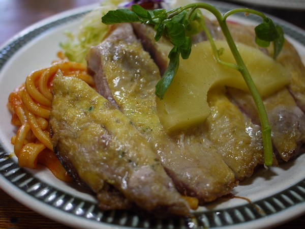 ポークピカタとピラフをたのむ。