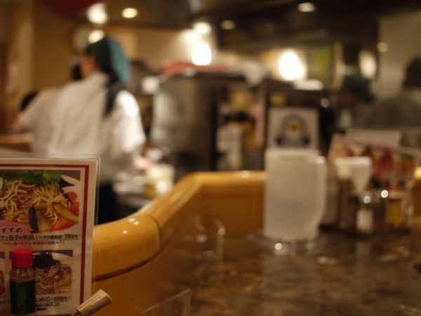 今では明るく、厨房前が素通しガラスになっていて、だから調理のさまが見て取れる。