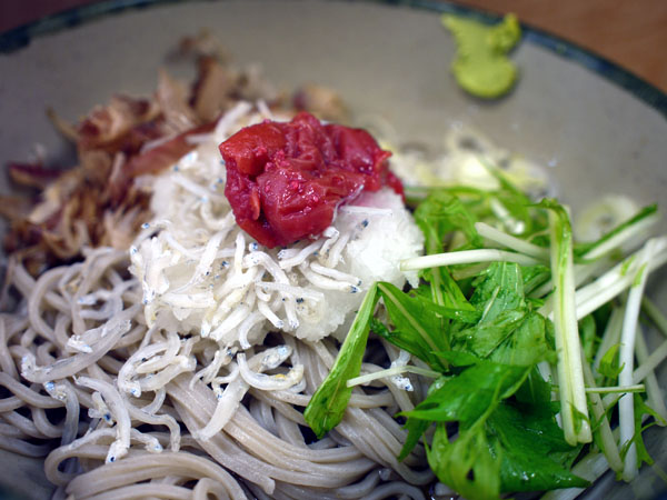 南高梅としらすおろしの冷たいそばという、今の季節の夏のそば。