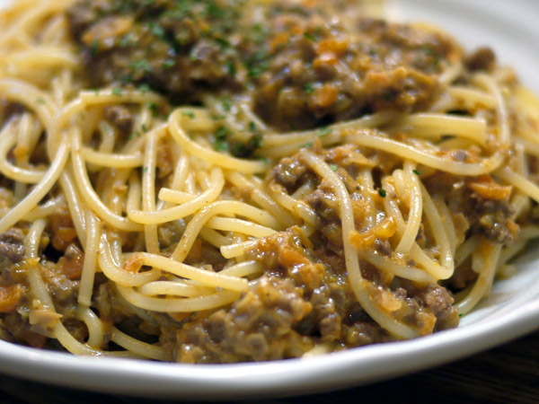 肉と野菜をみじんにしトマトベースでコックリと煮る。