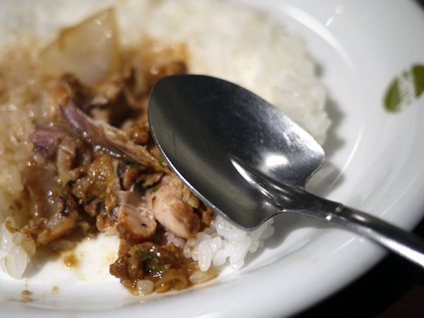 骨付きドラムが、ほぐれるほどに煮込まれているということもあるのだろうけど、このスッコプスプーンでとっても楽にきれいに食べれる。