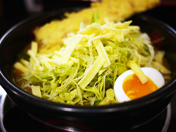 「レタスちゃんカレー」って名前がついた、カレーうどんの上にタップリ千切りレタス。