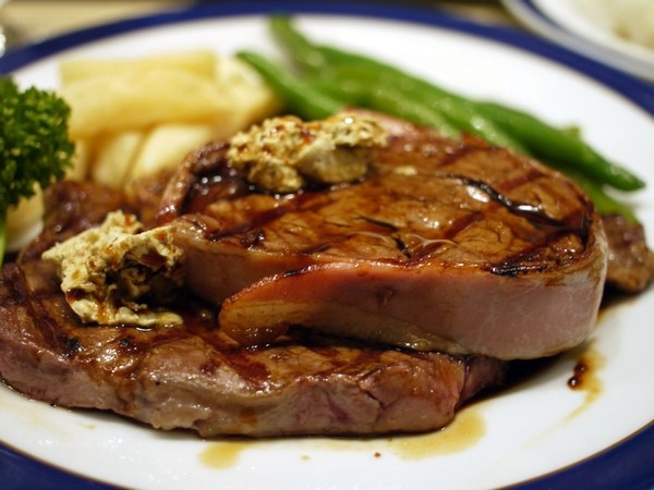 顎を直撃するようなたくましい肉の食感を味わいたいなら、リブステーキが最適で、ここのステーキもまさにそんなマッチョな味わい。