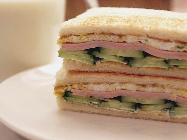 いつもよりもほんの少々、厚目に切ったパン、トーストしてそれらを全部、重ねて切った。