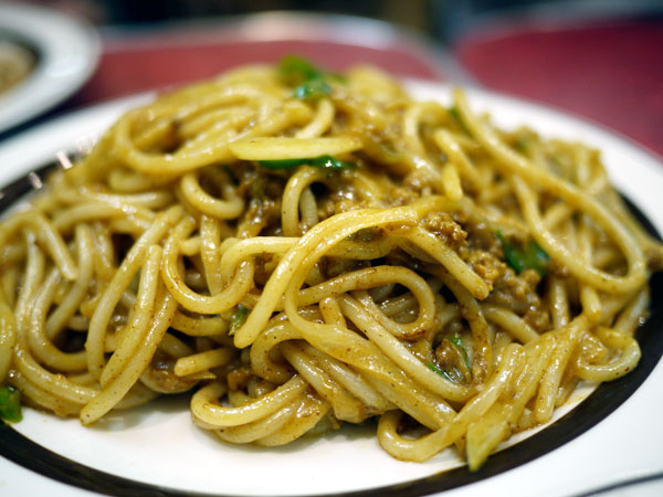 カレーライスもいいけれど、こうしたパスタに絡めたカレーがどこを食べても均等に、もれなく口に入ってくるのがなんだかたのしい。