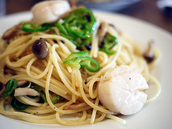 イカとホタテとしめじの和風スパゲッティ。
