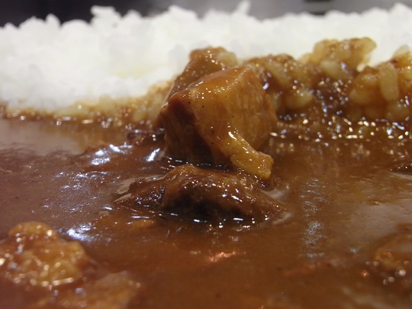 カレーの海に点々と、まるで小島を浮かべたような肉の塊が食欲そそる。