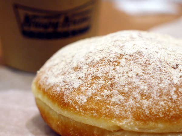 コーヒーをおいしく飲むにはやっぱりドーナツでしょう…、と訳の分かんない理由をつけて、シナモンアップルを一個買う。