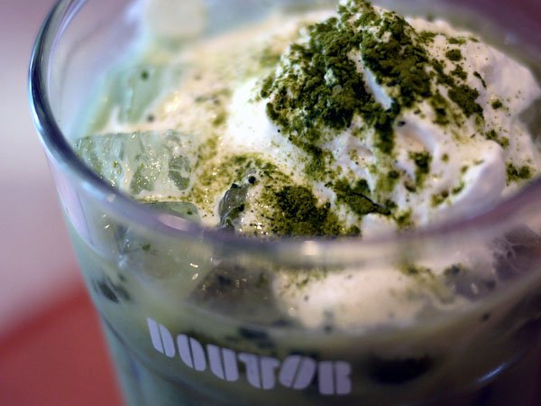 ここの抹茶は最初から甘くなってて、その上、ホイップクリームがタップリ表面飾ってる。