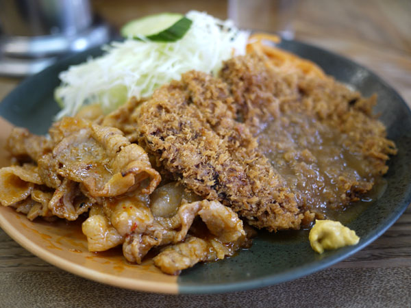メンチカツとしょうが焼きの盛り合わせ。