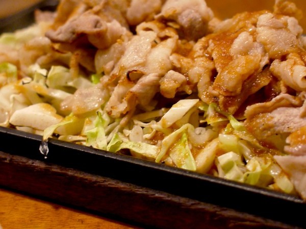 同じく鉄板にキャベツをのっけて、そこに好みの具材をのせる。