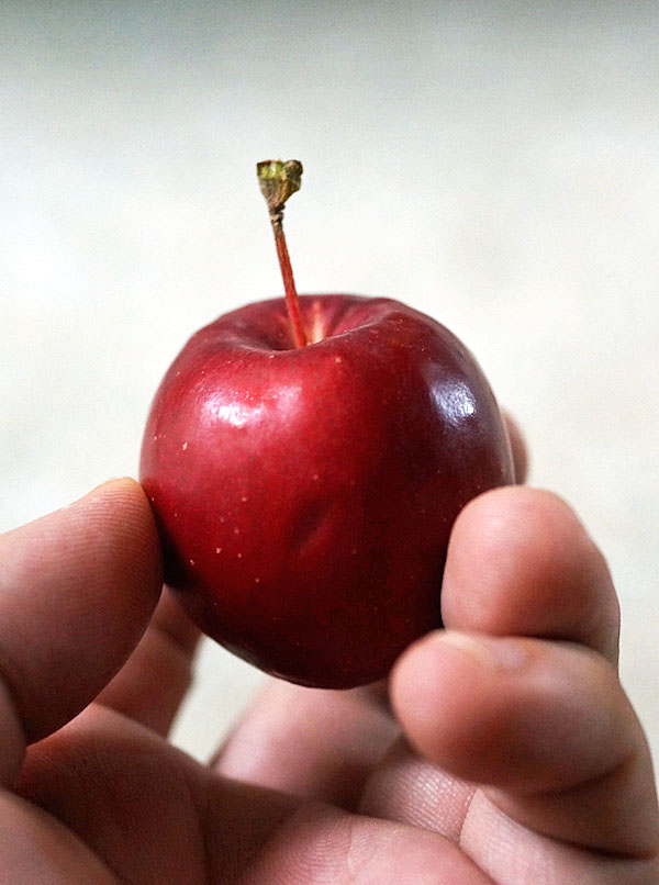シャキシャキ、前歯が痒くなるような食感の日本ではやりの甘いりんごは苦手だけれど、この姫りんごはオキニイリ。