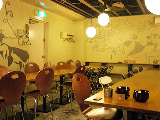 天井抜いて照明器具とスピーカーをぶら下げて、厨房作ってドリンクバーを作るだけ。