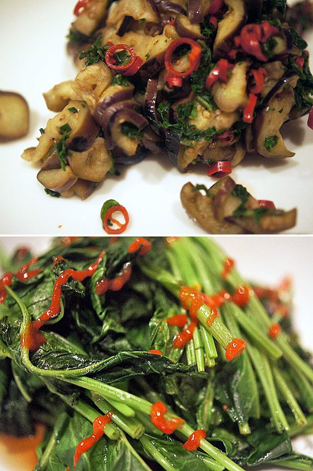 冷蔵庫の中に余っていた茄子にそれから空芯菜。