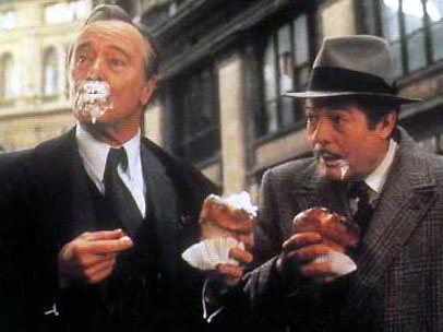 「マカロニ」!これ、生クリームしぼってあるけど、二人とも「ぐじゃっ」と食べてますよね~私のババは一口サイズだけど、この映画を見ると、