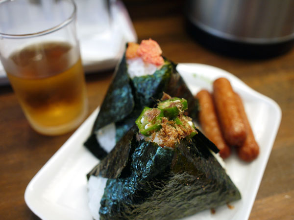おむすび二個と揚げたウィンナっていうのが、最近、ここの定番の朝。