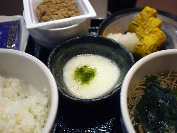 納豆、とろろに焼き海苔、それから温かいそば。