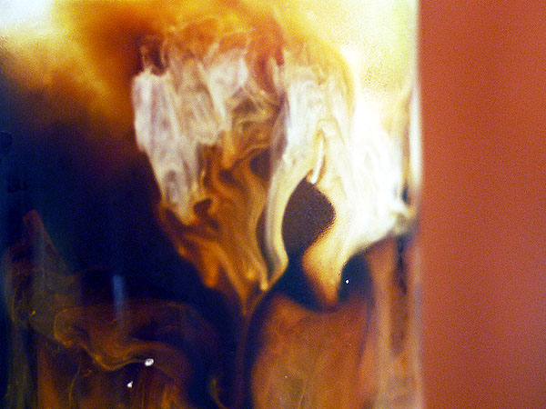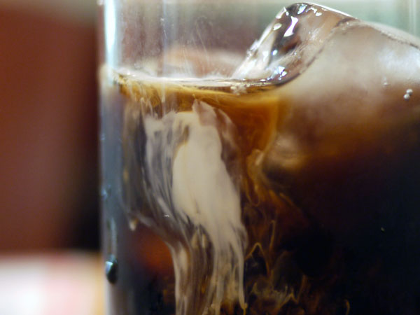 アイスコーヒーと渦を次々つくりつつ、混じりあってく。