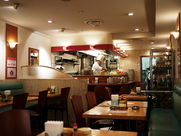 つまりボクがこの時間帯の最初のゲストで、お店の人は一生懸命、厨房の中を磨く仕事をしてた。
