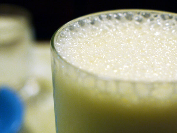 氷の上をなでるように、タラッとユッタリ、コーヒーの中に流れ込む、ミルクがなんともうつくしい。
