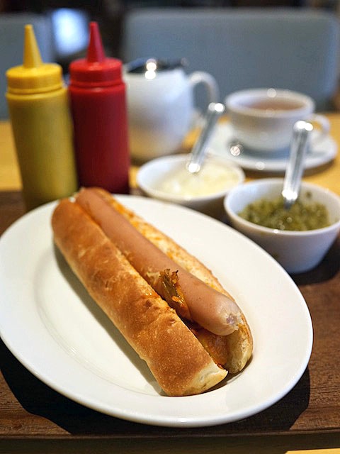 カリッと歯ぎれるソーセージが、ムッチリとしたパンと一緒になって口を満たして、ひと噛みごとに肉汁がジュワッと滲んで、パンをみずみずしてくれる。