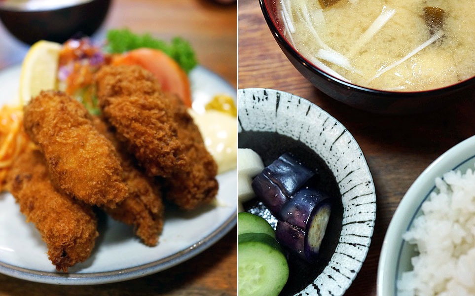 揚げ物が人気で父も好きだった牡蠣フライを定食にする。